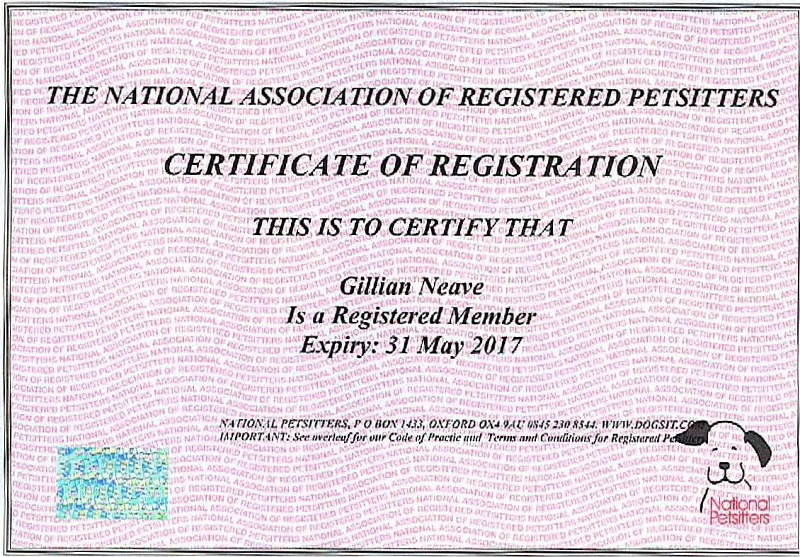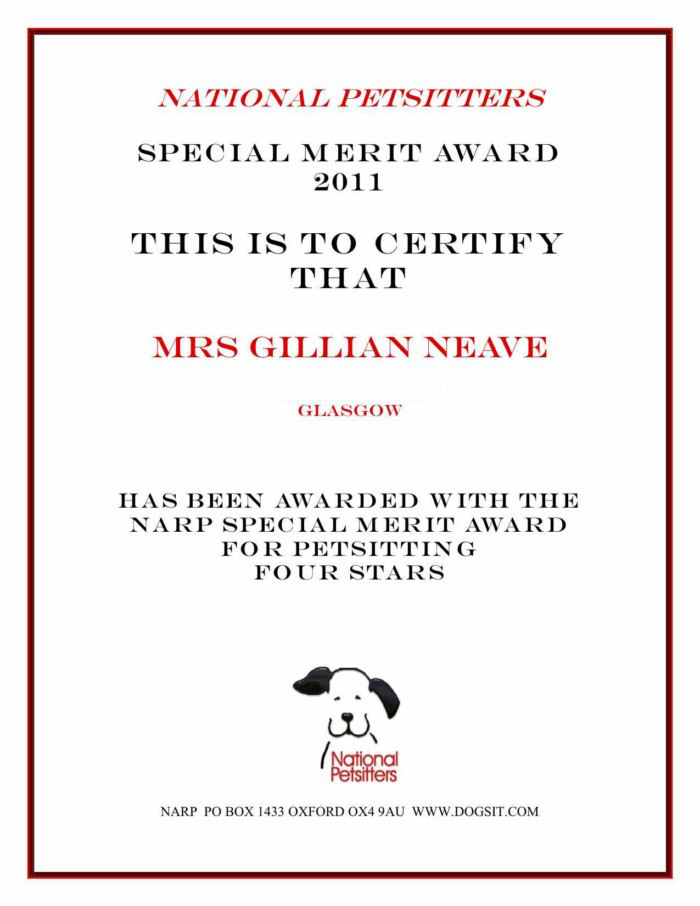 The fact that she has been awarded her fourth National Petsitter Merit Award just reinforces the excellence of Gillian's service. She provides fantastic value for, what I consider, a very reasonable pricing structure.