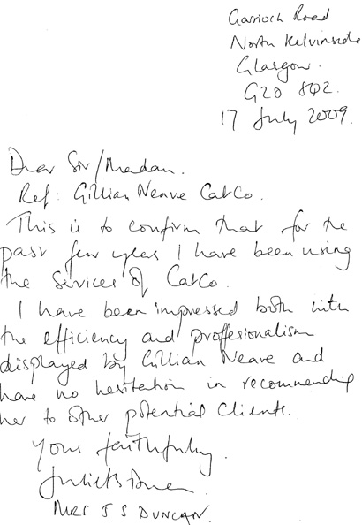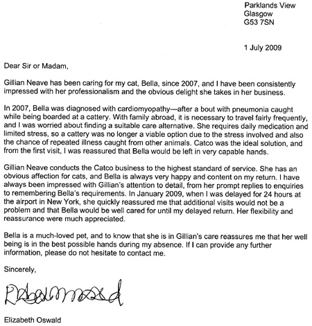 It gives me great pleasure to be able to write a reference for the services of Gillian Neave and CatCo.